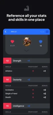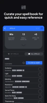 Our app is packed with features to elevate your character sheet experience, making it the ultimate companion for your D&D adventures. Seamlessly track every detail of your character, from skills and stats to inventory and more. Pair your sheet with a comprehensive spellbook that lets you learn, prepare, and manage spells effortlessly.