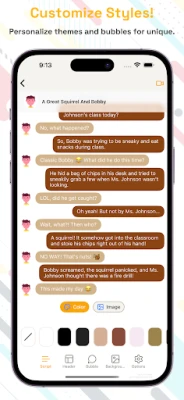 🎨 Customize Everything: Choose chat themes, bubble colors, fonts, and backgrounds to mimic real messaging apps.