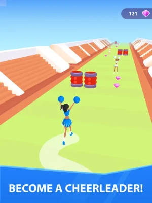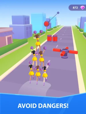 Recruit other cheerleaders, avoid obstacles and collect gems on your way to Victory!