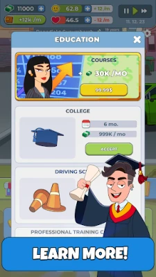 Discover initial methods to secure an income, engage in employment, pursue educational opportunities, and ascend the ranks of the corporate world. Invest in the stock market, and acquire assets such as cars, homes, and aircraft. Strive for success in every endeavor!