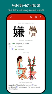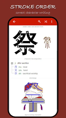 The app uniquely deconstructs Chinese characters and words down to their simplest components, providing a clear link between each component, with memory aids provided for every word and character.