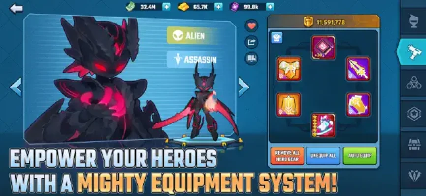 Embark on an enchanting adventure with heroes in a fairy tale city in this idle RPG mobile game. Immerse yourself in a captivating world where five factions collide: Mech, Bio, Gene, Mystic, and Aliens.