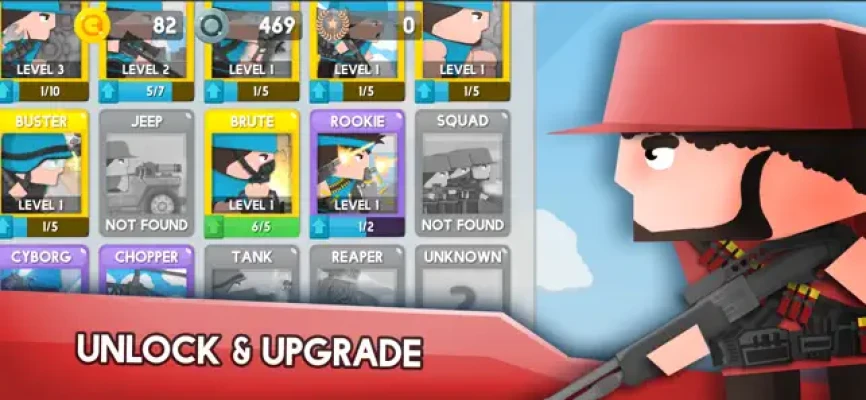 Unlock and earn diverse military troops, including snipers, soldiers armed with miniguns, jetpack-equipped warriors, tanks, jeeps, helicopters, rocket launchers, and more in these engaging Military Battle strategy games. Elevate your entire battalion to new levels in these epic Military Battle strategy games!