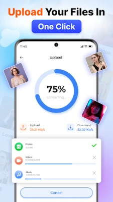 With Cloud storage drive, you can safely back up your images, videos, documents, audio files, and contacts & access them anytime, anywhere. This is the app for users who want to free up space, secure their data, and enjoy a smooth backup and restore experience.
