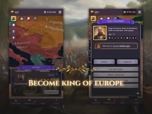 Build castles, send expeditions, raise levies, pass new laws, research groundbreaking technologies, and more! Clovis is deeply strategic, but also narrative-focused, with tons of lore, and characters from real history that you can interact with! Play as a Roman emperor, an Ostrogothic Dux Bellorum, or as Clovis, the first king of France! Europe is yours in this strategy war game.