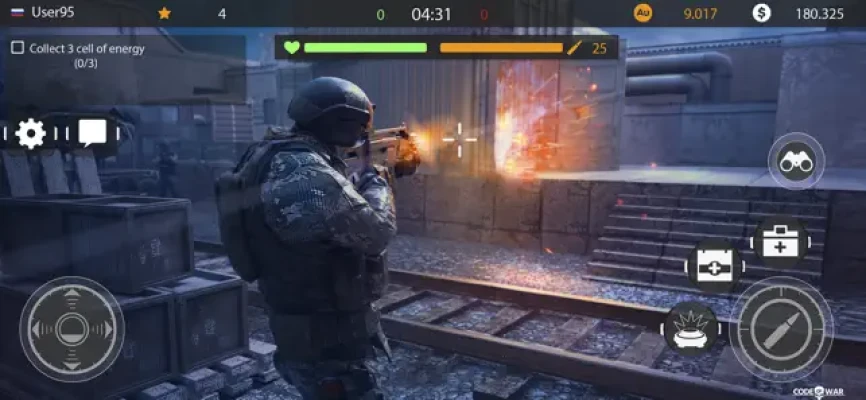 Command online shooter - pure action only!Code of War is the online shooter game with the best 3D graphics, realistic physics and the huge selection of actual guns.Try your skills and mastery in the dynamic online action versus other players from the whole world!Become the best and achieve first places in the global leaderboard.Improve your mastery and skills of your fighter to become more powerful!Fight shoulder by shoulder with your friends and achieve the higher ranks of the leaderboard in the modern online action game Code of War!Invite your friends and play together ABSOLUTELY FOR FREE!