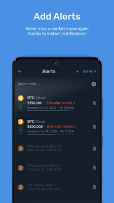 No crypto price tracker is complete without alerts that ensure you never miss any big moves in the cryptocurrency market. Set up crypto price alerts that notify you when the cryptocurrency of your choice reaches a specified price.