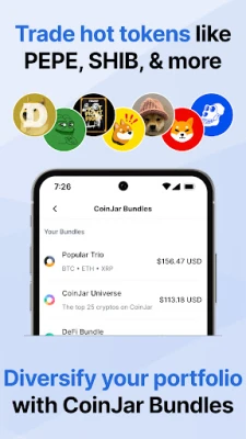 You can also buy themed collections of cryptocurrencies in one simple transaction, like Meme coins or Popular Trio.