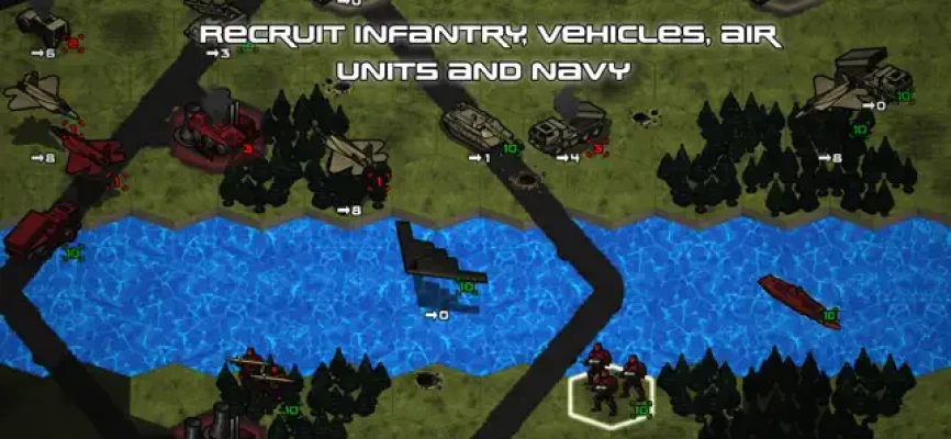 - Recruit infantry, vehicles, air and naval units to help in your mission