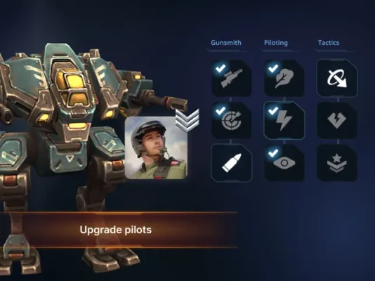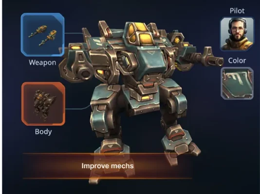 In offline and PvP modes, you'll face a variety of enemies and engage in intense battles where each turn counts. Your tactics will be crucial to achieving victory, so plan your attacks carefully and keep your enemies in your sights. Collect the most powerful mechs for every mission and equip them with the right weapons to test in real battles. The more you win, the more you can upgrade your combat arsenal!