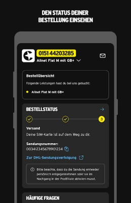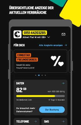 - Daten, SMS und Minuten einsehen (inkl. Widget für Datenverbrauch)