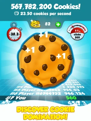 - Bake as many cookies as you can by tapping on a giant cookie. The faster you tap, the more you bake!