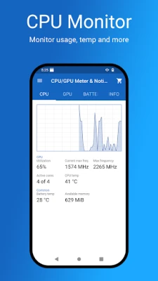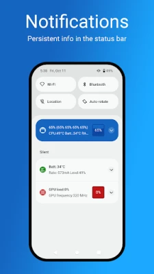 With help of this CPU/GPU/Battery Monitor & Notification you can have all this data as permanent notification and you can access it in a single swipe.