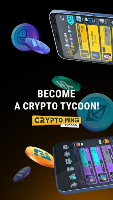 Start as a rookie miner and level up fast! Tap to mine your first virtual coins, upgrade your rigs, hire elite managers, and unlock high-tech zones inspired by futuristic crypto worlds.