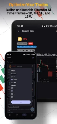 Signal Tab: Get continuous crypto signals for various cryptocurrencies. π Use these analyses to open futures or spot trades and make profits. π° In the Signal Tab, you can receive signals in different time frames like 1D, 4H, 1H, and 15min. β³ You can also filter bullish or bearish signals. ππ