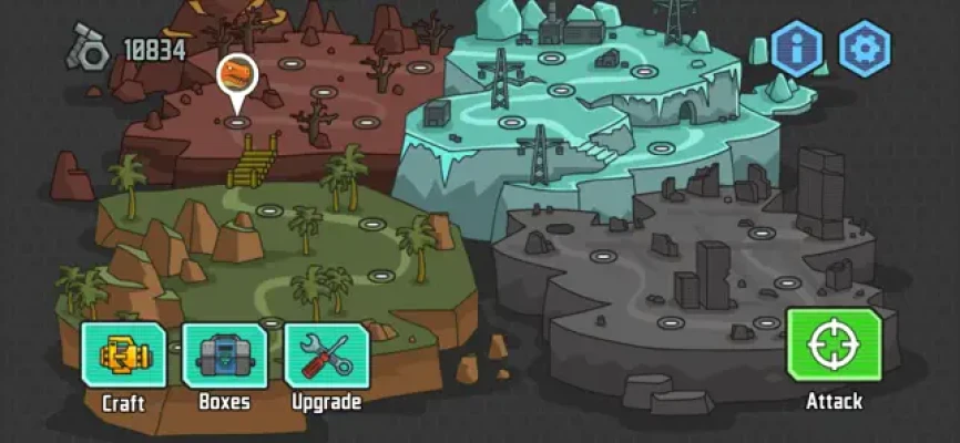 AttackThe first thing you’ll do in CyberDino is attack. In attack mode, you roam through a series of battles against robots. You have 3 abilities to use with your default attack. There are 4 separate regions, each new place bringing tougher enemies, and a final boss at the end.