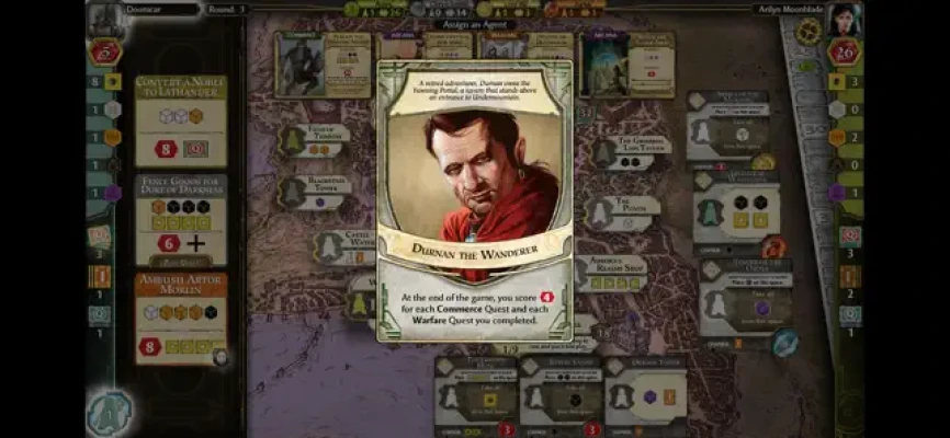 Lords of Waterdeep is a turn-based strategy game played in 8 rounds and can be played against AI or with up to 5 human players. Players take turns assigning their agents to do their bidding, whether it is to recruit new adventurers to their tavern or purchase a new building for the city. Points and resources are gained by completing quests, playing Intrigue cards, constructing new buildings or having other players utilize the buildings you have constructed. At the end of the 8 rounds bonus points are awarded and the player with the most points at the end wins the game.
