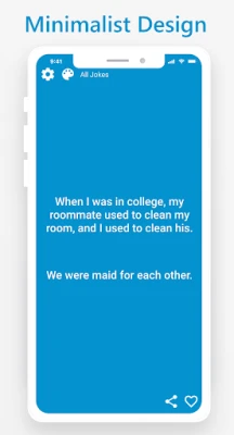 This application has a very colorful and minimalist design made to let you fully enjoy these jokes. The punchline is not immediately revealed to let you get surprised. We hope you will like them !