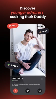 Discover every kind of Daddy — Muscle Daddies, Successful Daddies, Daddy Bears, Silver Daddies, Leather Daddies — and younger guys who appreciate experience, all in one welcoming LGBTQ+ community built on respect and real connections.
