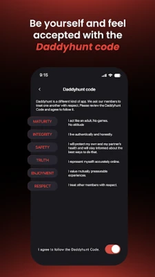 The Daddyhunt Code promotes Respect, Maturity, and Safety, ensuring a positive space for everyone.