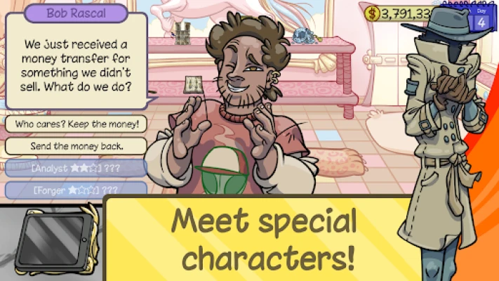 Each customer behaves differently during negotiations according to their unique psychological traits. It’s up to you to understand who you have in front of you, how to treat them and how to seal the deal! Use all your negotiation, psychology and management skills to create your pawn empire!