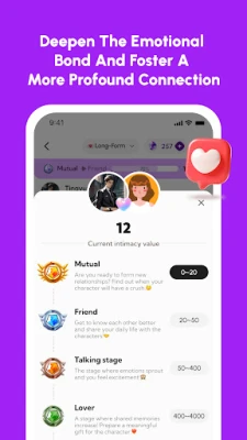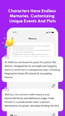 Character memory: Enjoy unlimited character memories that grow with every interaction.As your relationship with your character deepens, so does the richness and emotional complexity of your conversations.