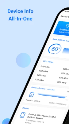 Device info provides comprehensive information about the device hardware and software.