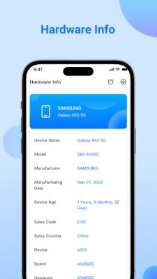 π Device Info: Brand, Device Name, Model, Manufacturer, Manufactured Date, Device Age, Device, Board, Hardware.