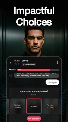 This isn’t just chatting with bots. Every conversation unfolds like a visual novel. Your words shape how your AI boyfriend reacts — tease him, open up, or stay mysterious. Every interaction creates progress in your relationship and unlocks new sides of his personality.