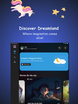 Welcome to Dreamland, the ultimate storytelling app for kids! Dreamland empowers young imaginations by allowing children to create their own unique stories with the help of advanced AI technology. Whether your child dreams of magical kingdoms, adventurous quests, or funny animal antics, our app helps turn those dreams into captivating narratives. With just a few taps, kids can craft delightful tales that reflect their creativity and originality.