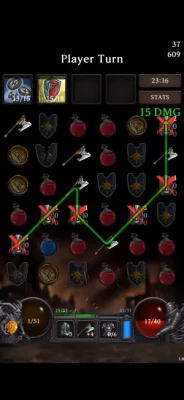 Dungeon Tracer is a puzzle RPG that combines puzzle game mechanics with role-playing elements. Players match tiles to trace paths and aim to collect as much gold and experience as possible throughout the game. As the game progresses, enemies grow stronger, requiring careful strategy.