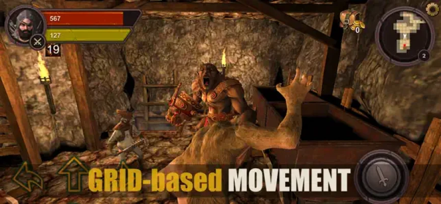 The grid-based controls are similar to old-school dungeon crawler games from 90s. That means 90 degree turning, movement on a grid. It features not only button controls but also joystick.