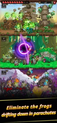 [Frog Defense], where you face off against enemies that fall from the sky and skip floors.
