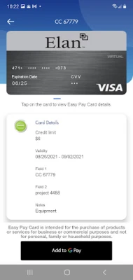 An authorized provisioner for your organization will receive an email invitation from Elan Financial Services with all the information to download the app and register. Once registered, the provisioner creates a virtual Easy Pay card by: