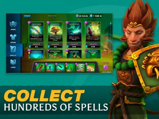 • Spell-Based Hero Customisation: Equip your heroes with over 135 unique spells, each with exclusive stats and attributes, to enhance their combat effectiveness. From Uncommon to Legendary, these spells enable heroes to adapt and overcome diverse challenges.