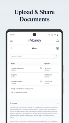 · Secure Document Vault: Upload and store important documents securely. Share them with your advisor whenever you need to, directly through the portal.