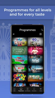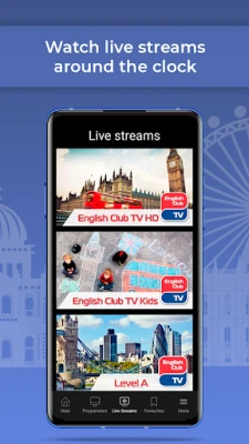 The app allows you to watch the online stream 24/7. Use the special Schedule section to plan how and when you want to learn English with ECTV. Have you missed your favorite episode? It’s no problem because you can always find it in the Programmes section.