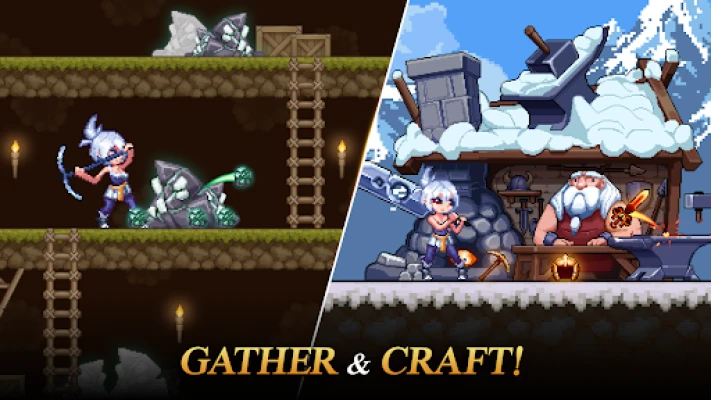 Your hero’s path is uniquely yours to shape. Engage in mining to collect precious stones and ores, which you can then smelt and craft into powerful sword and armor in the forge. Chop down trees for wood, explore dungeons for rare loot, and build an arsenal that will aid you in your battles. The crafting system is robust, providing endless opportunities to upgrade and customize your character.