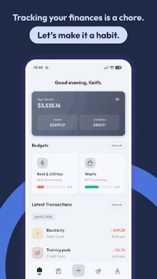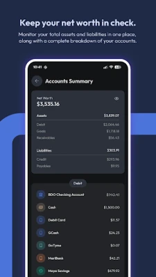 • View your net worth, assets, and liabilities along with a detailed and customizable breakdown of your accounts.