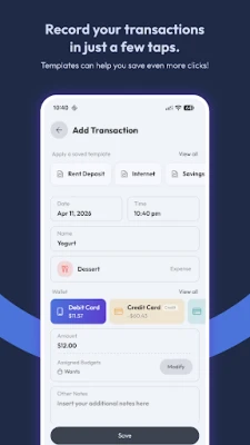 • Record your income, expenses, and money transfers in seconds!