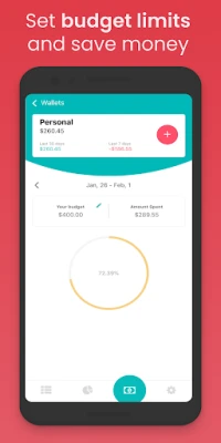 Set unique spending limits on each of your unlimited wallets. We'll notify you when your spending is close to your budget limit based on your inputs and real-time bank feeds.