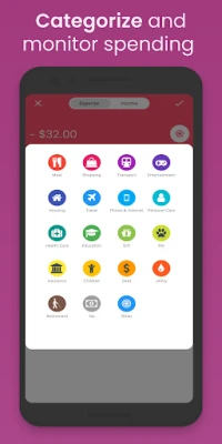 Log and categorize your expense and income entries to make your finances easy to review and organize. Complete with unique icon assigning.
