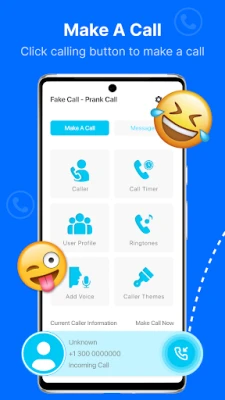 The prank call app is like magic, making your regular moments more fun and surprising. Non-stop fun and laughter are guaranteed. Unleash Your Prankster Spirit. The fake call app makes priceless expressions and laughter on your face when you interact with the app.