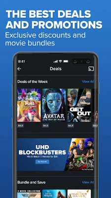Movies, anywhere. Want to buy, stream, rent or watch them for free? Get the free Fandango at Home app and instantly watch movies and TV shows wherever and whenever you want, on your phone or on the device of your choice. Join us – no subscriptions and no contracts to sign here! Watch new movies and shows weeks before they hit the shelves and other subscription streaming services. Stream with stunning clarity and sound in up to 4K UHD, with Dolby Vision HDR and Dolby Atmos audio on select devices. Or watch thousands of titles free with limited commercials with Fandango at Home Movies On Us – now also on the Android TV app.