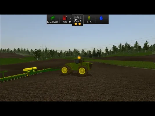 Watch the weather as rain and sun affects the growth and harvest of crops! Too much rain and your fields become muddy. A hard snow in winter will require you to hook up the snow plows to get out of the lot.