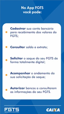 Todos os saques previstos em lei estão disponíveis no aplicativo e, caso necessite ou tenha direito, você pode solicitar no próprio App.