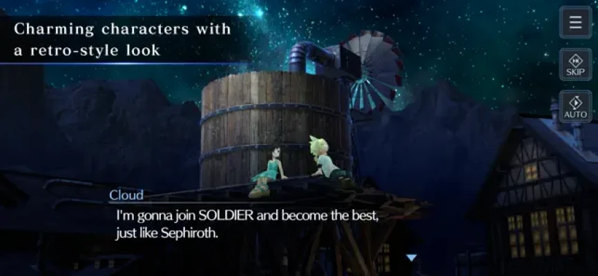 Immerse yourself in beautifully rendered, fast-paced command-based battle evolved from FFVII’s Active Time Battle -- now revamped to play smoothly on mobile devices with high-quality graphics. The battles give spotlight to classic FINAL FANTASY RPG elements such as, Abilities, Materia, Summons, and heart-pumping Limit Breaks, while supporting additional features on mobile such as Auto Mode and Battle Speed that make the game even more enjoyable to play.
