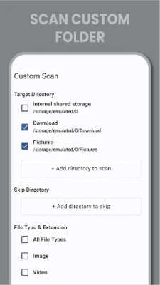 Use this option to scan all existing files in the storage. It scans photos, videos, audio, documents, and every other file and compares them for duplicacy. This option provides the most comprehensive scan.
