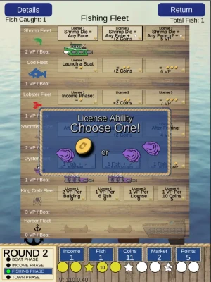 In Fleet: The Dice Game, you are back in beautiful Ridback Bay to reap its rewards! Fleet: The Dice Game takes place over 10 rounds with each round having two phases, the Boat Phase and the Town Phase.