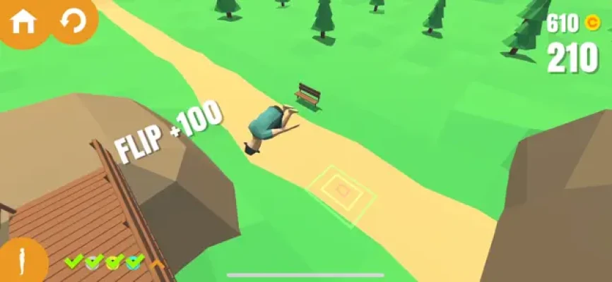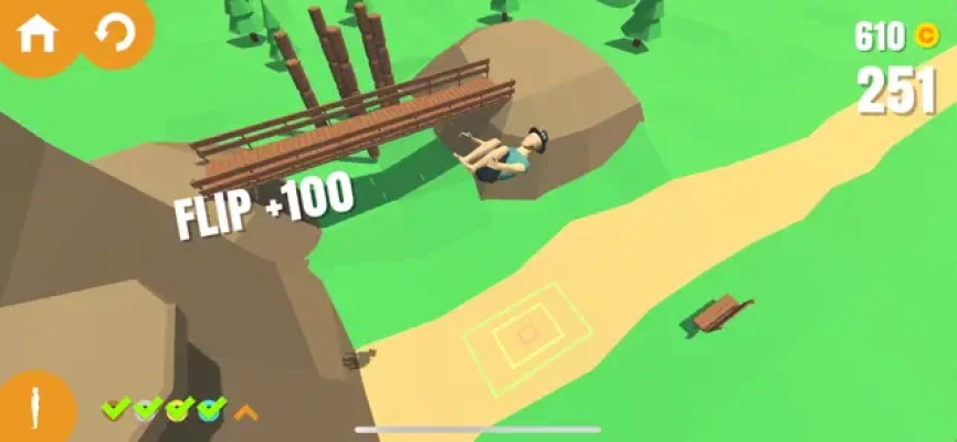 Gymnasts and acrobats are jealous - they only wish they had the skills of the Flip Trickster. Jump off from the highest mountains and hit your target! Avoid Dangerous objects that interrupt your flips. Make sure you land on your feet otherwise it will be a crash landing!